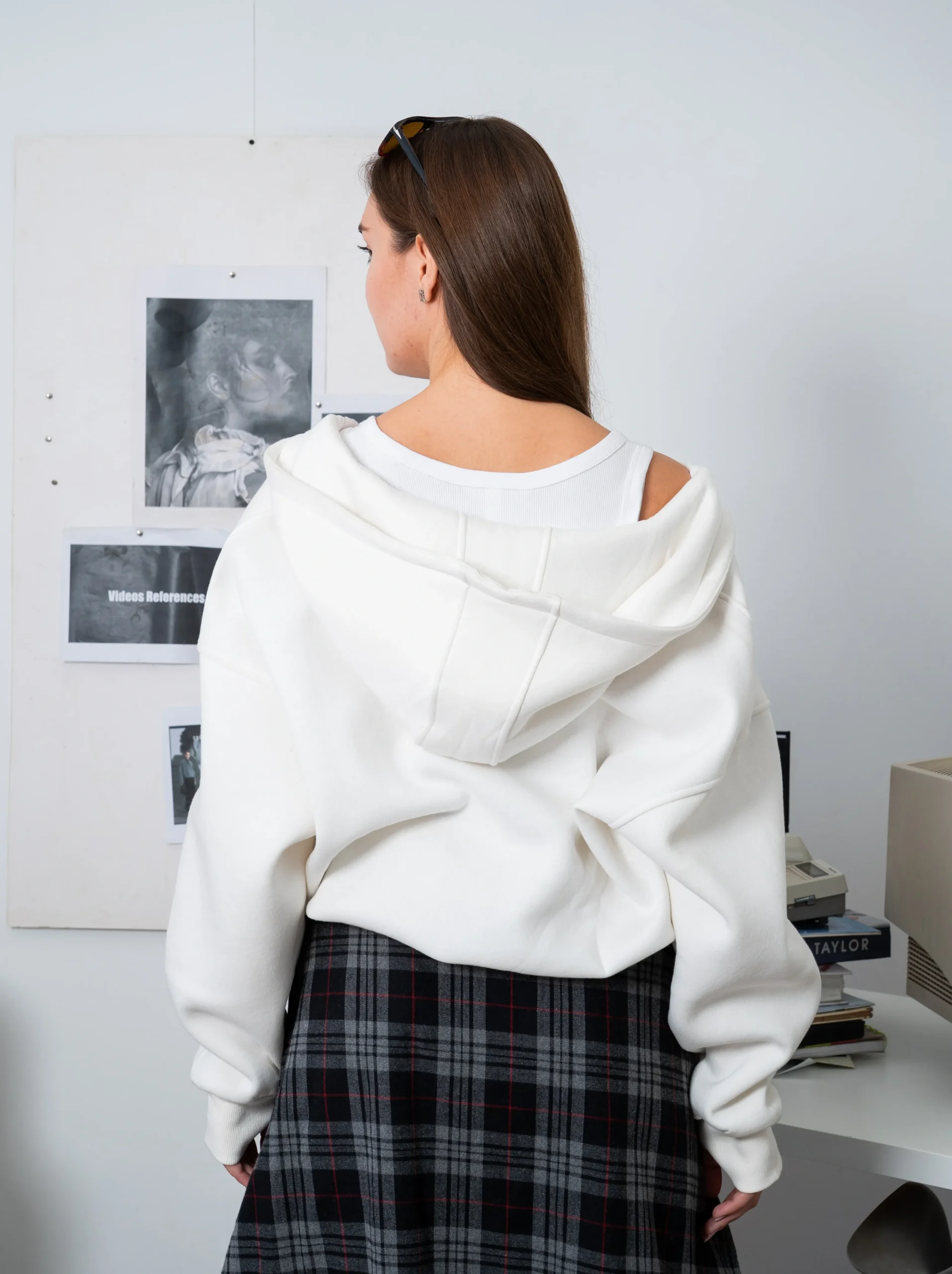 The fabric is lightweight yet warm, providing the ideal balance for transitional weather. The relaxed fit gives a flattering silhouette suitable for all body types, and its clean minimal design makes it easy to style with jeans, joggers, wide-leg pants, or leggings.